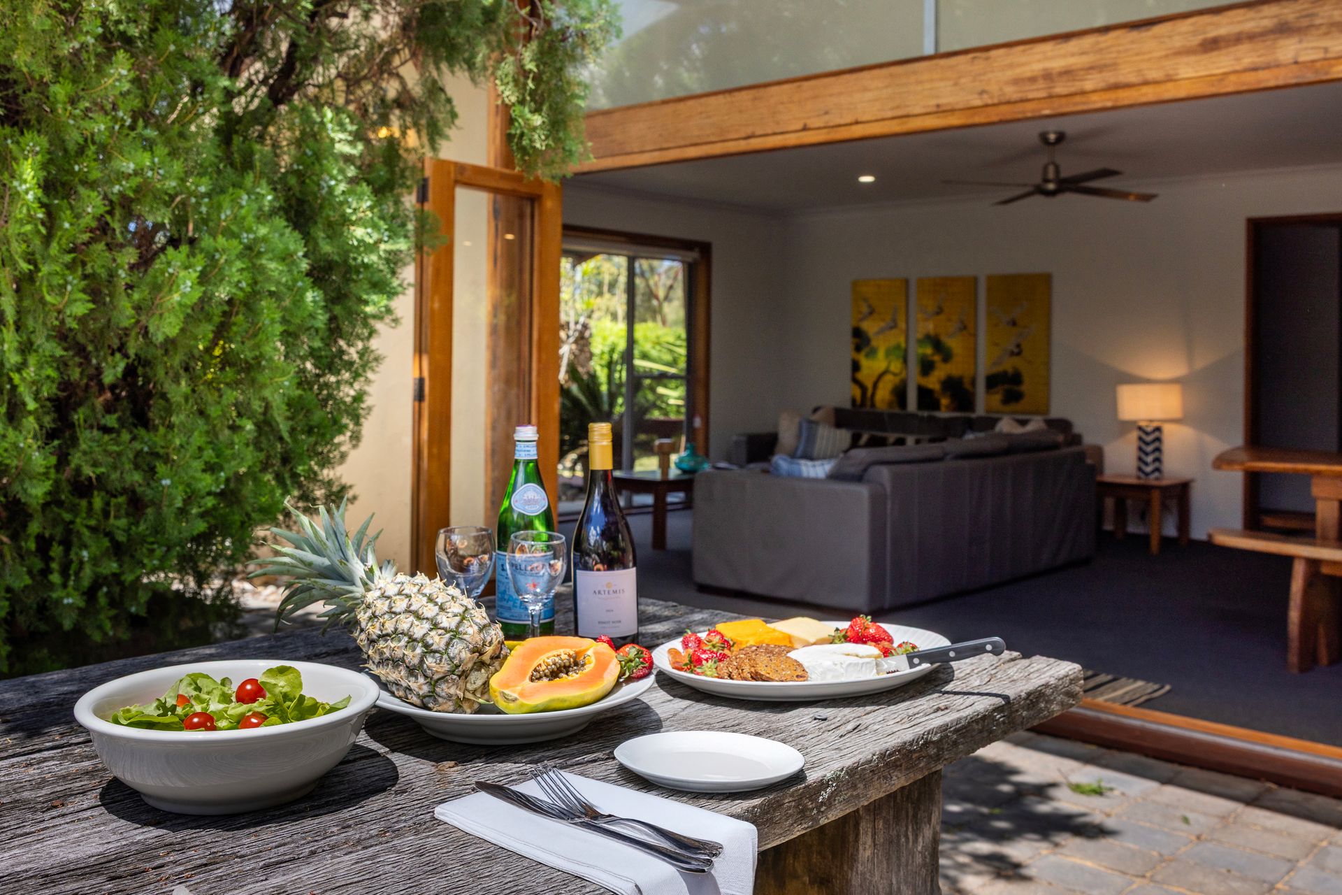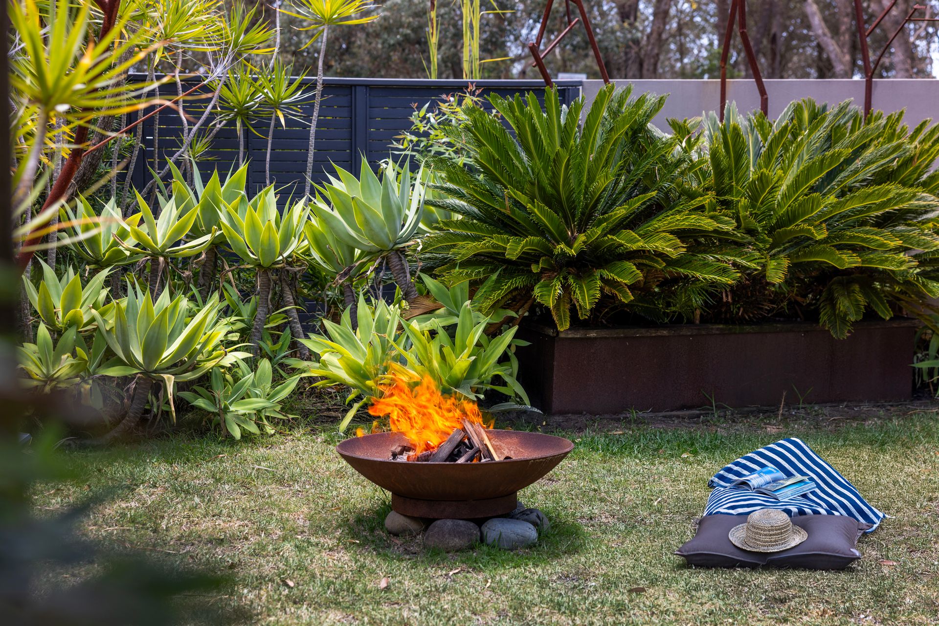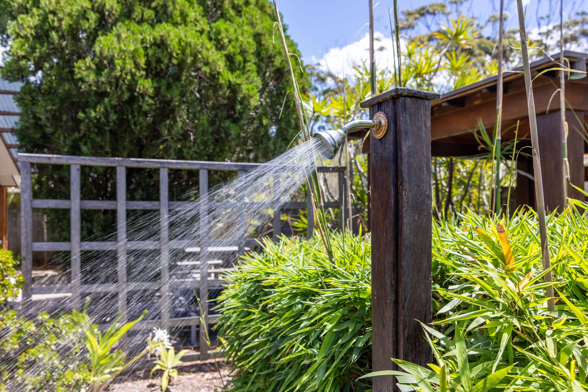 Outdoor Entertaining – Covered seating, BBQ, lawn and outdoor shower and firepit