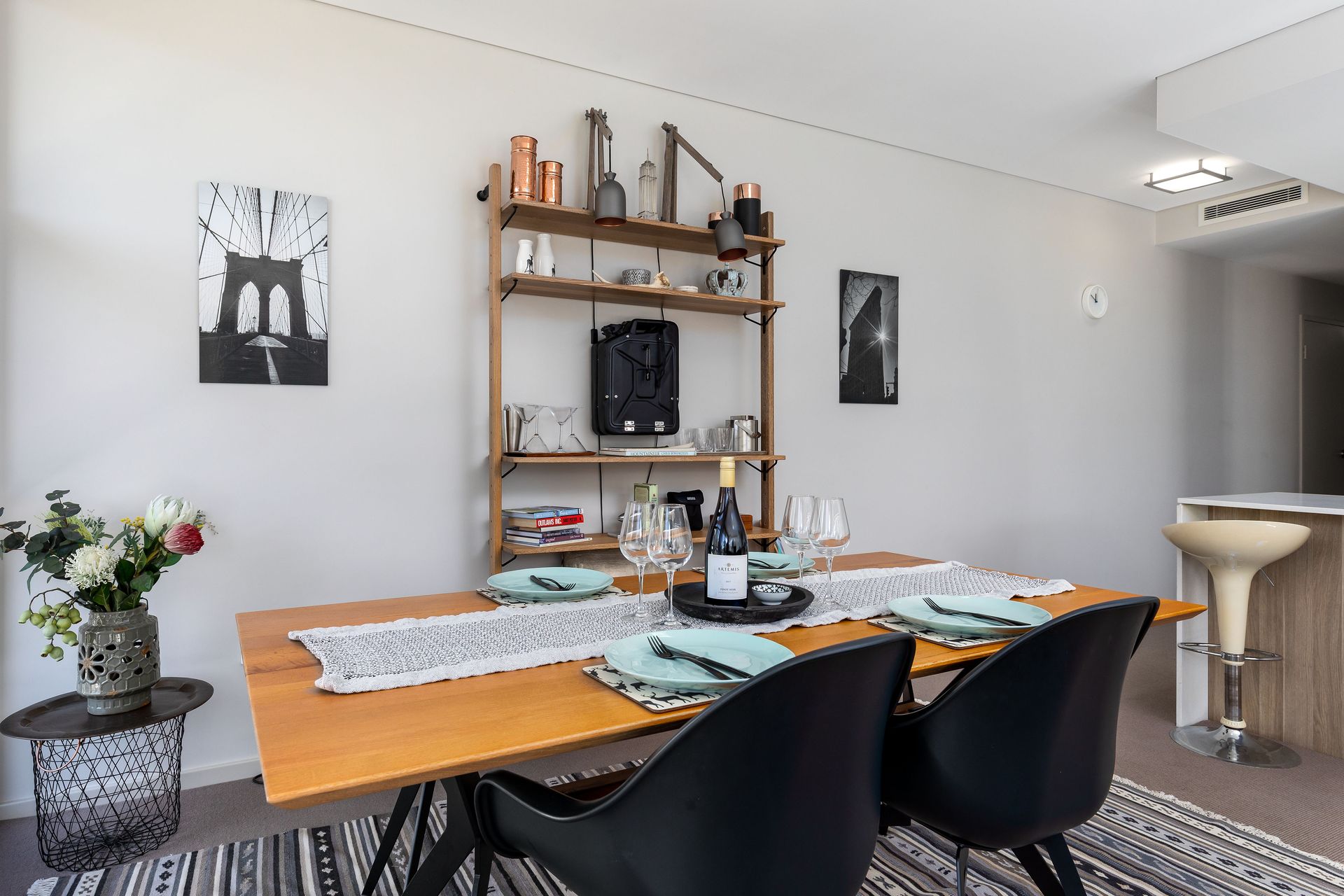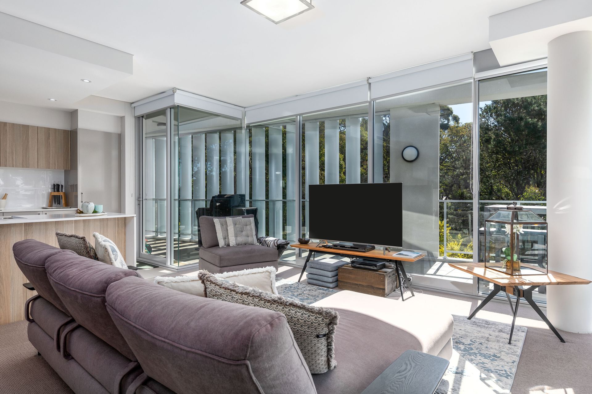 The open plan kitchen, dining and living space features a Smart Tv (guests can login to their own streaming services) and Foxtel.