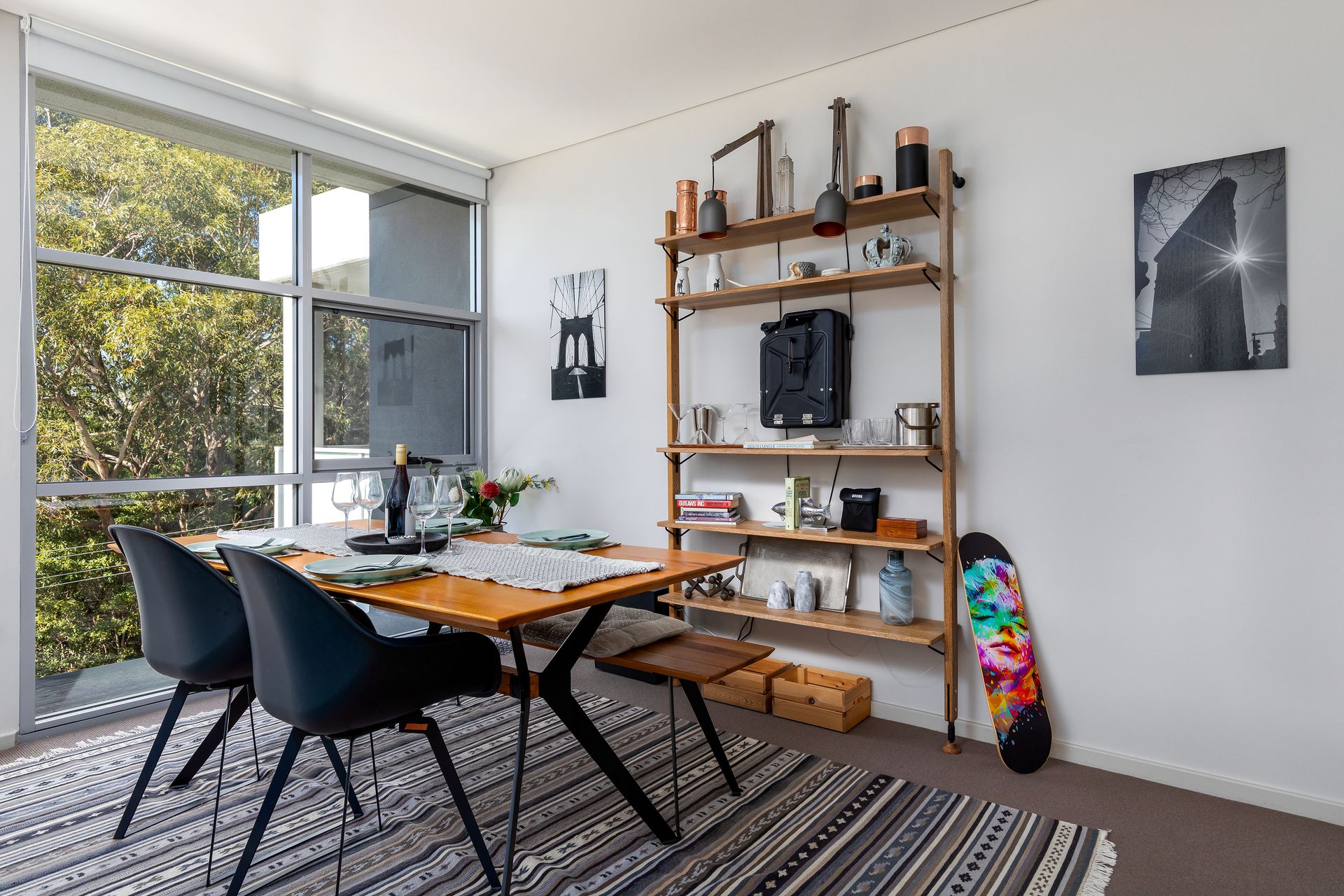 The open plan fully equipped kitchen and dining takes in the views and is completely light filled. There is a dishwasher, oven, stovetop, microwave, full size fridge/freezer, Nespresso Coffee machine and quality appliances.