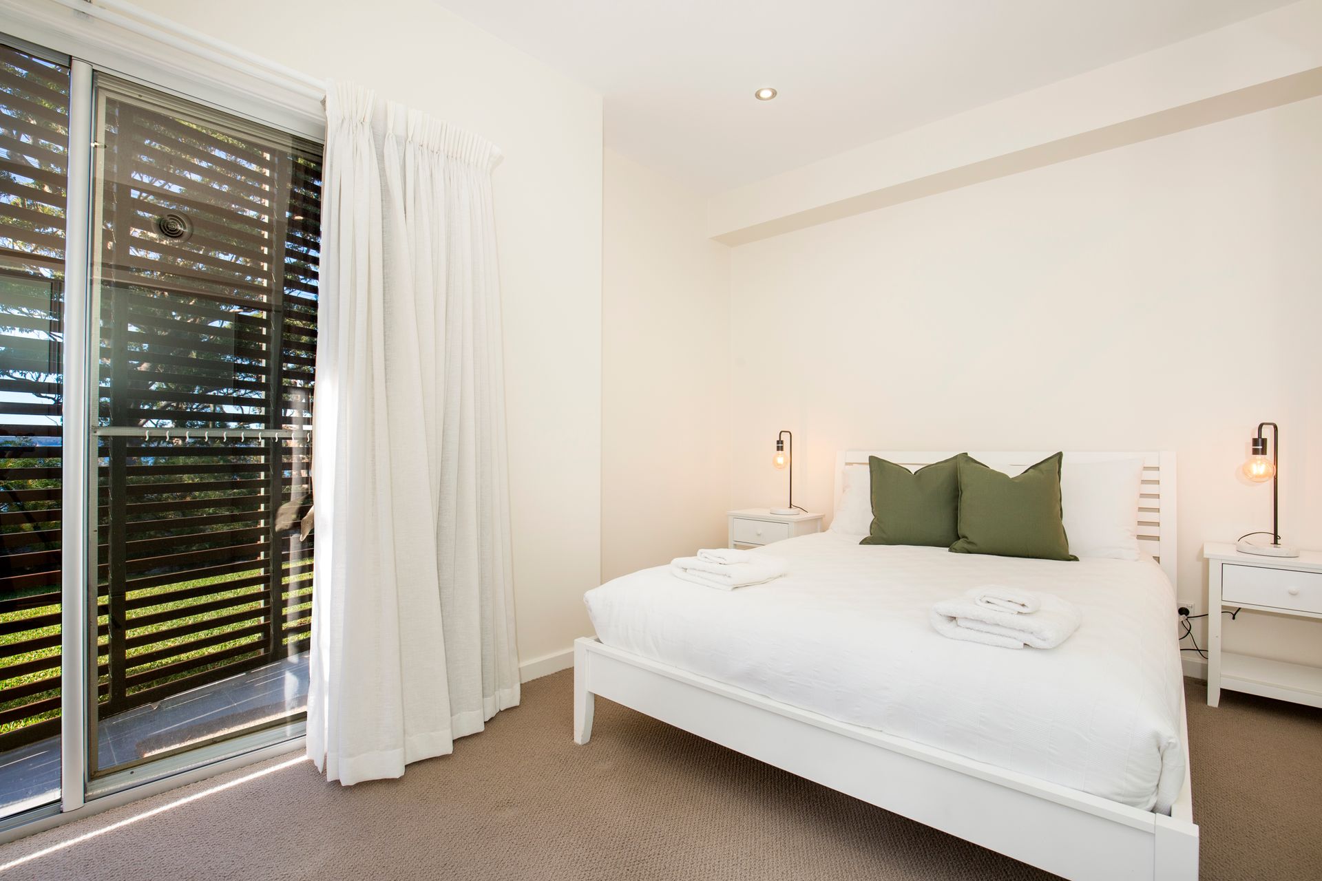 Bedroom 2: (Downstairs) Queen bed, , built in robes, access to outdoor patio area, Ceiling fan
