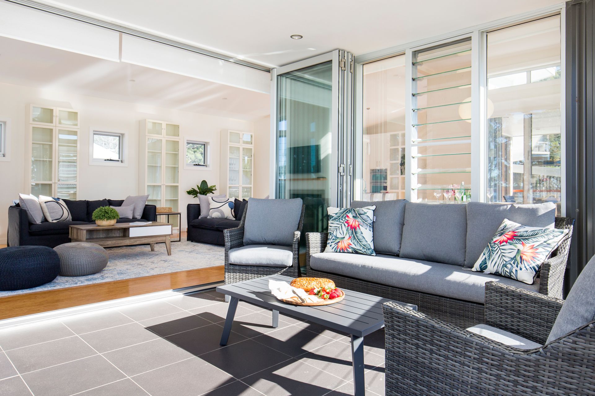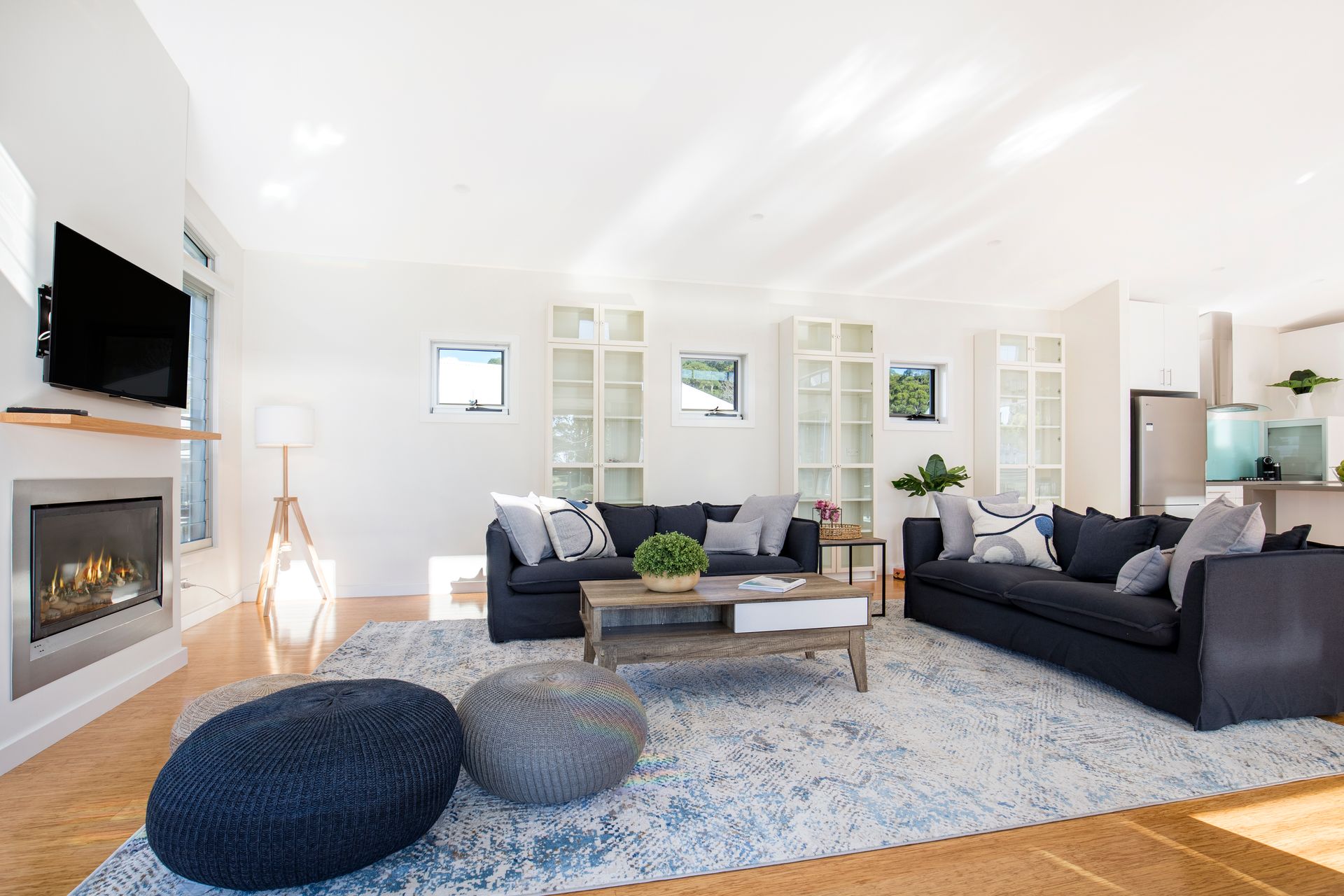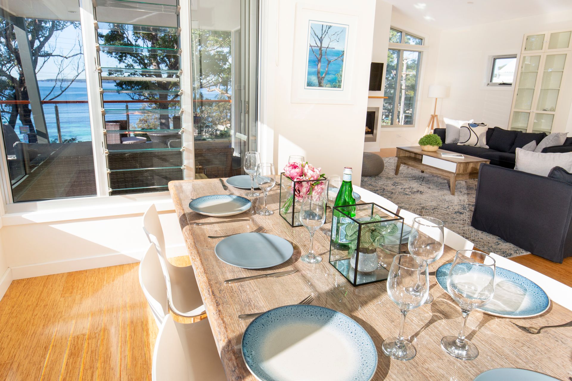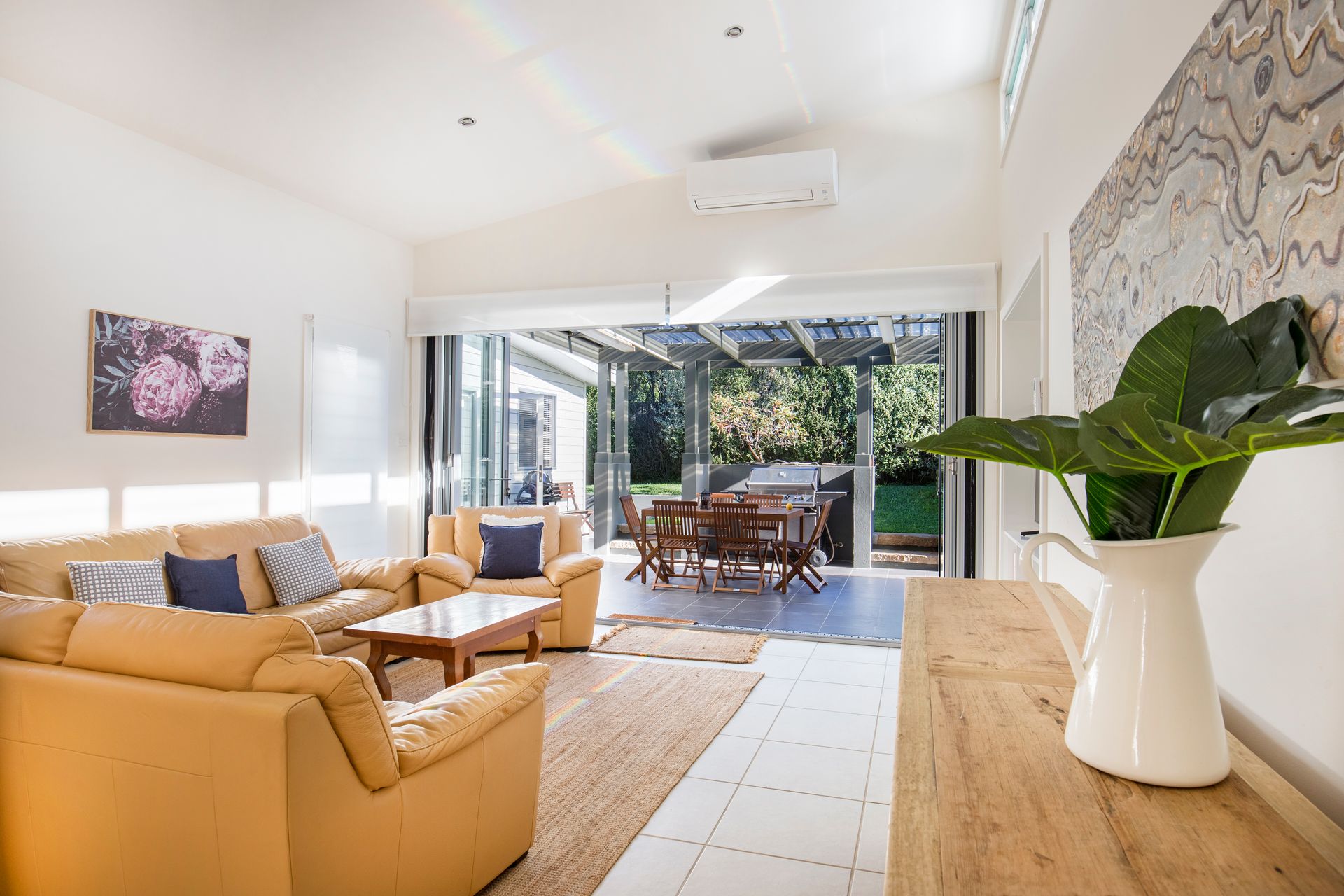 The home boasts open plan living spaces with the large kitchen opening out to the covered sunny decks. There are two lounge areas, one formal with a gas fireplace and TV with the second lounge area opening to the rear courtyard which is a lovely quiet spot to sit. The house has so many spaces guests will never feel like they are on top of each other.