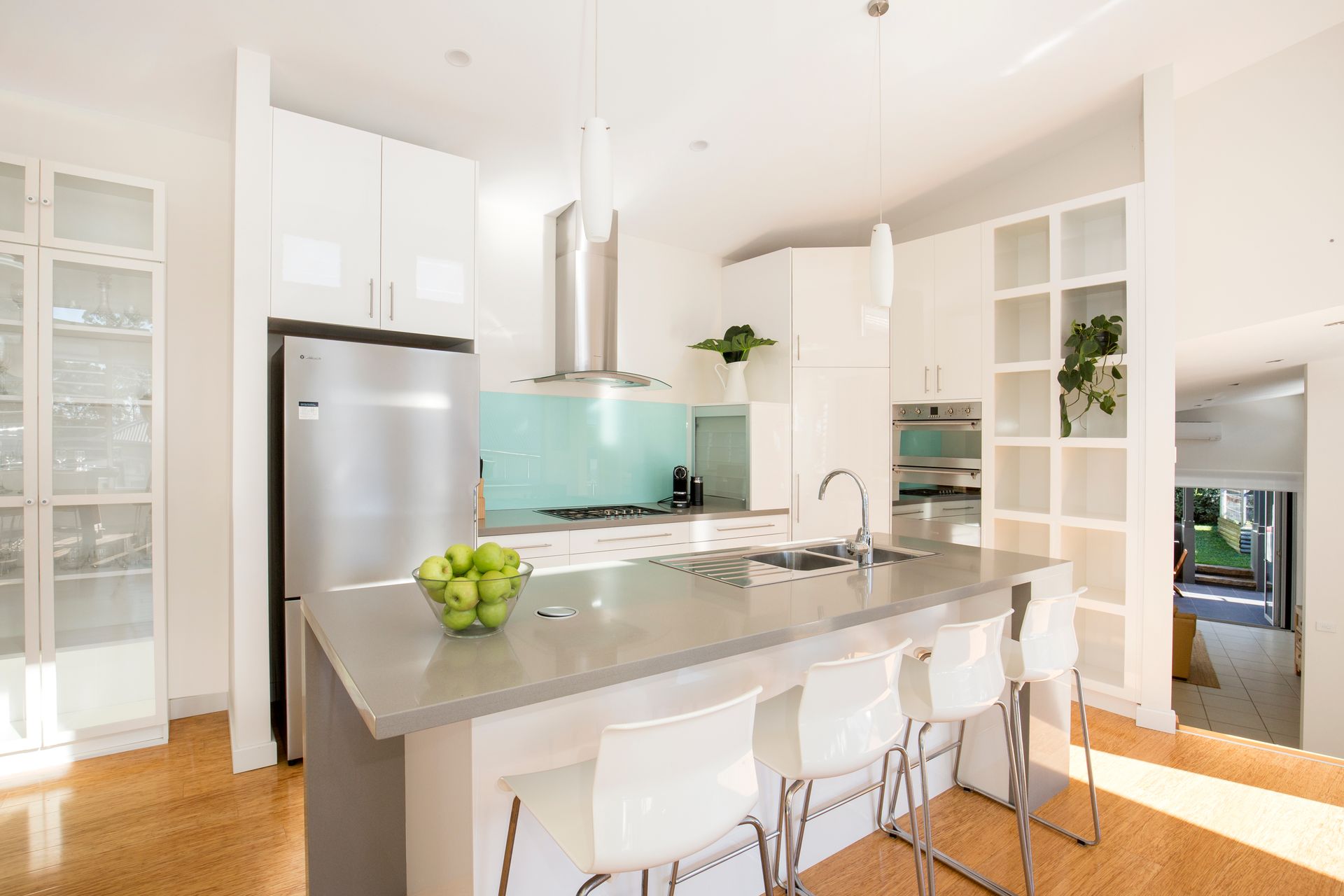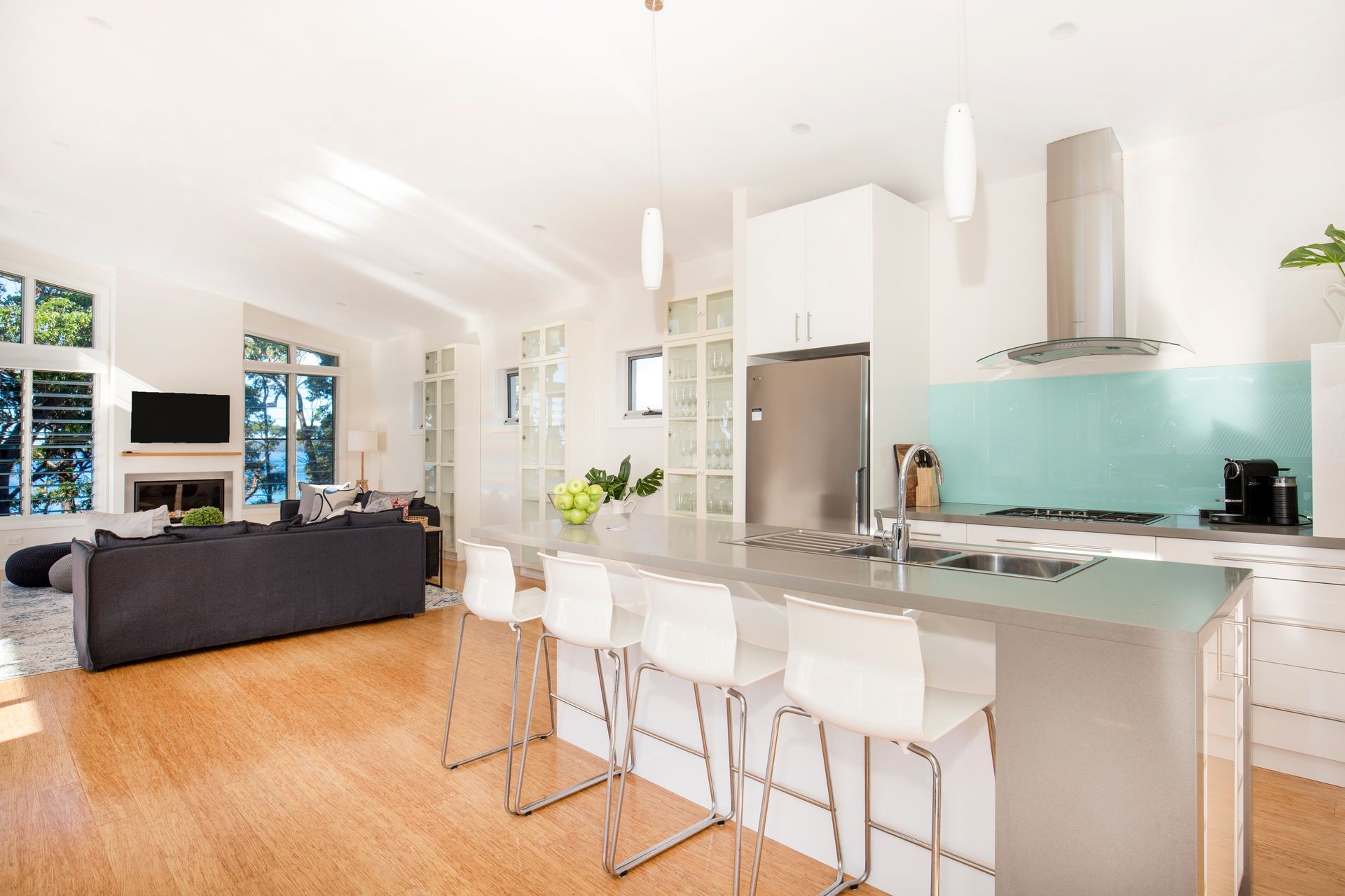Kitchen: Dishwasher, Coffee Machine, fridge/freezer, Gas Cooktop, Breakfast bar with stools