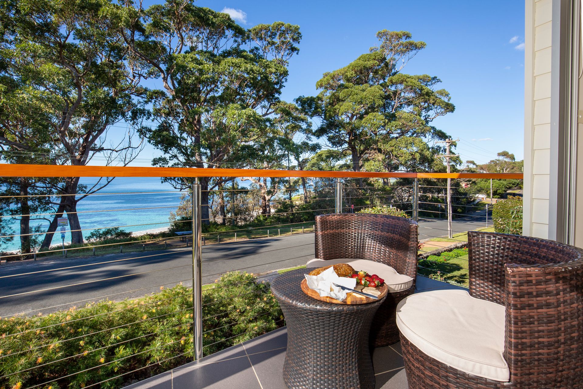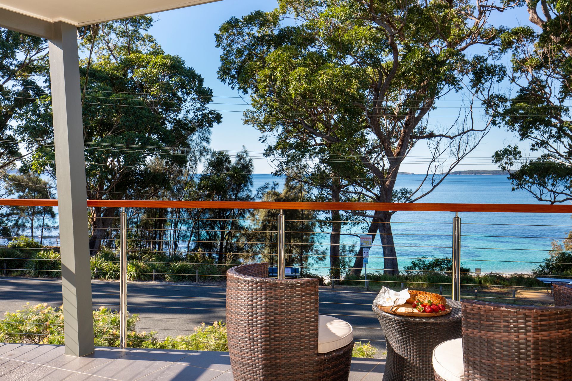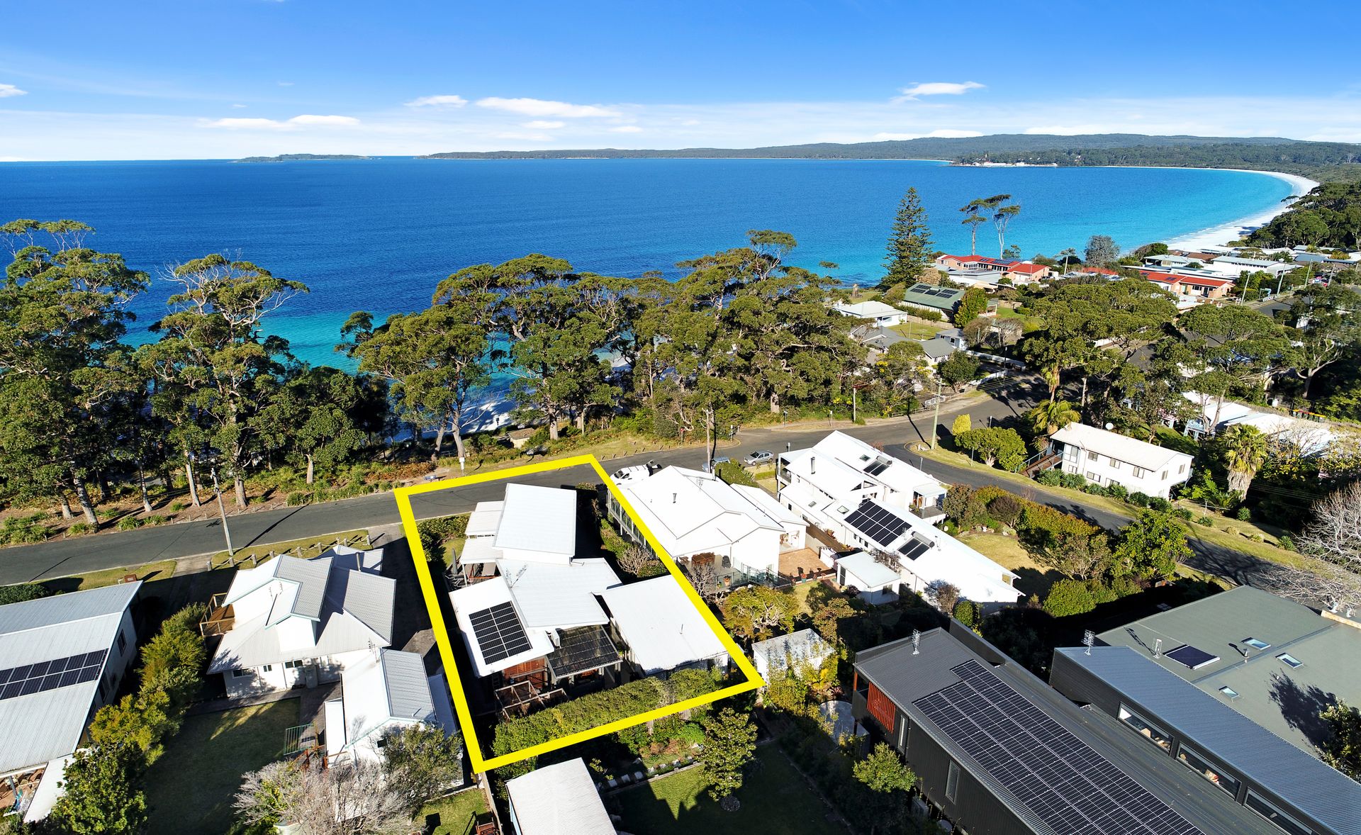 Located across the road from the white sands and crystal blue waters of Hyams beach, this light filled 3 bedroom beachside home is the perfect getaway for families. Relax on the front deck and enjoy the stunning views across Jervis Bay or venture across the road to Chinaman’s Beach for a swim.