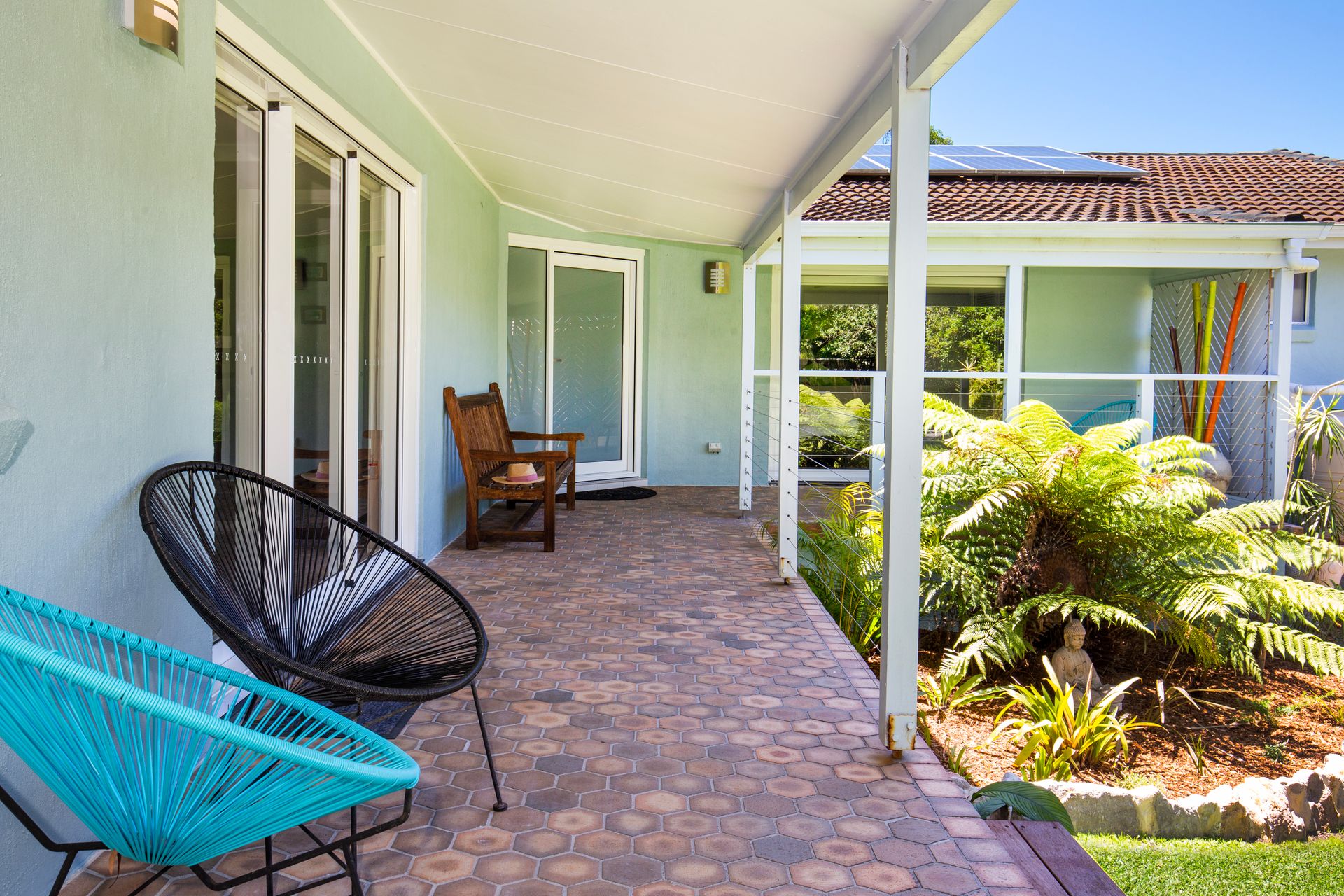 Yigala is a single storey home with split level back decks. There are 4 bedrooms and 4 bathrooms, a gorgeous fully fenced front courtyard/lawn with quiet sitting areas, an undercover deck at the back of the house, and open plan living areas.