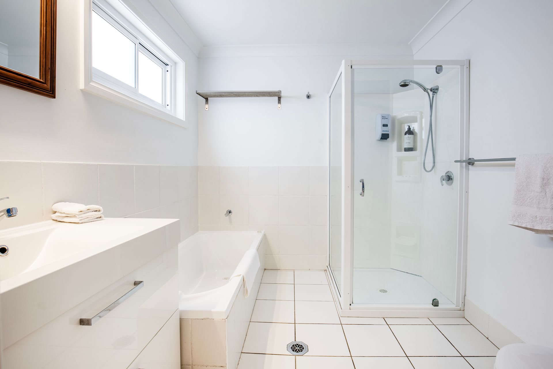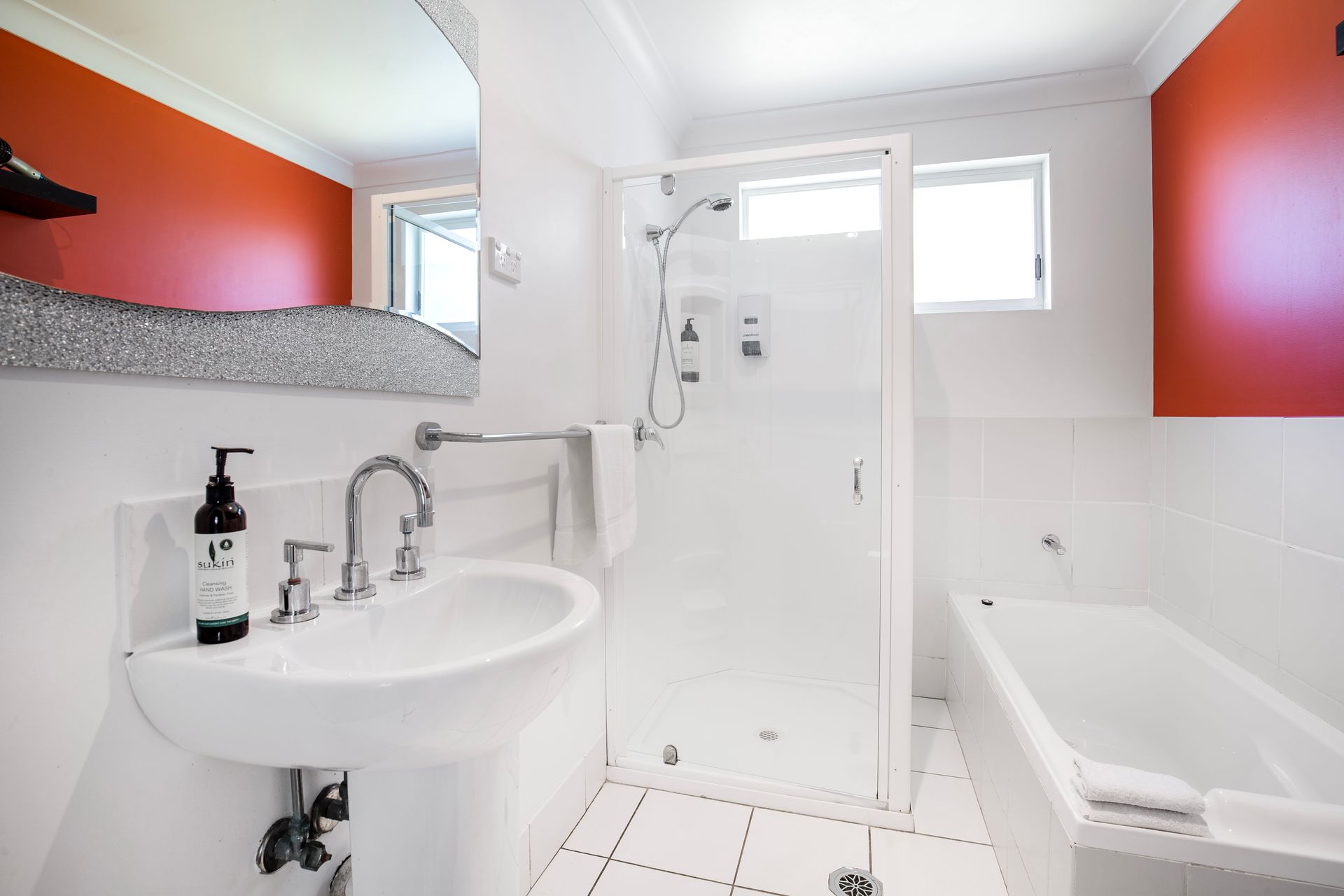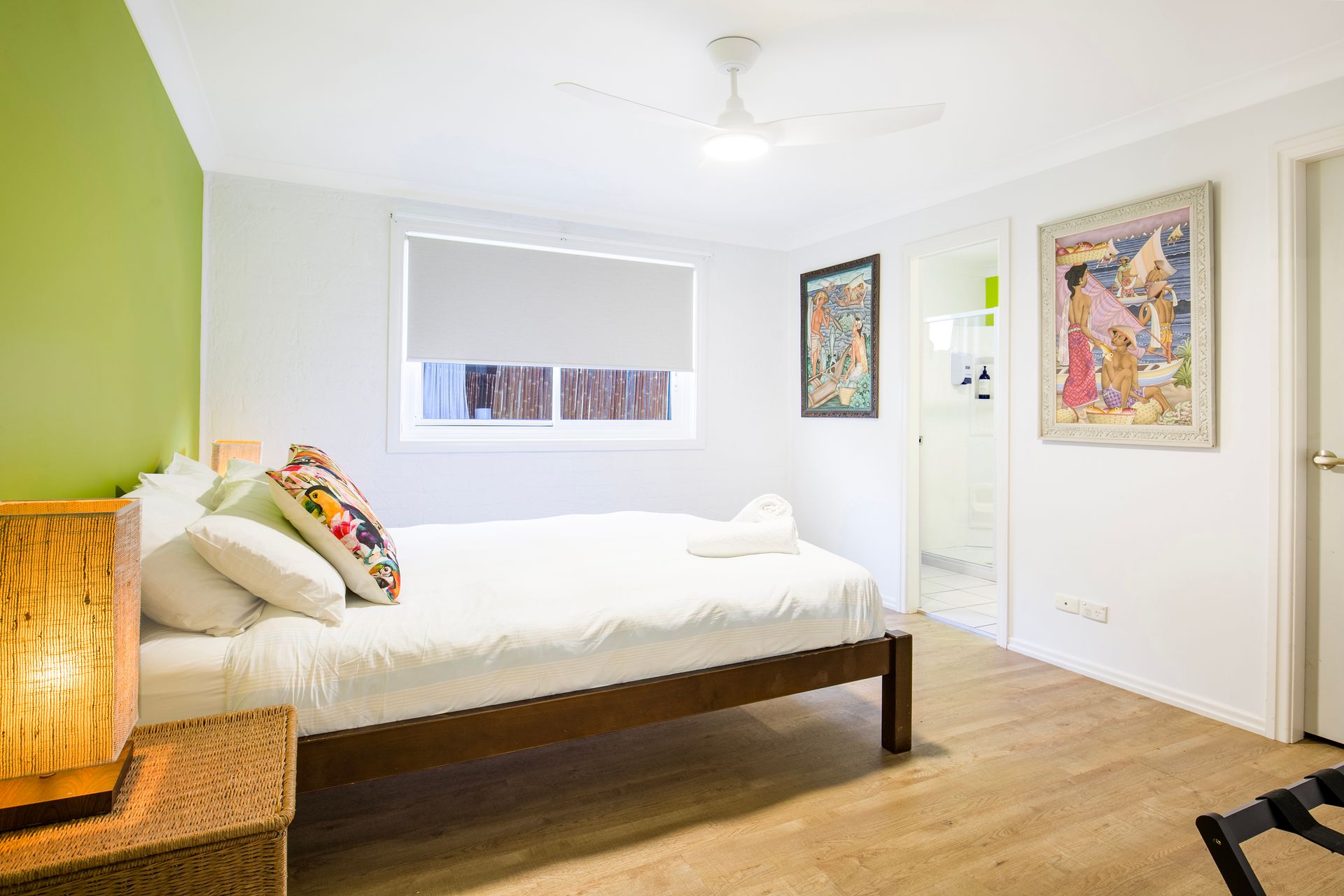 Bedroom 1: Queen bed, Ensuite with shower and bath, Walk in robe, Ceiling fan