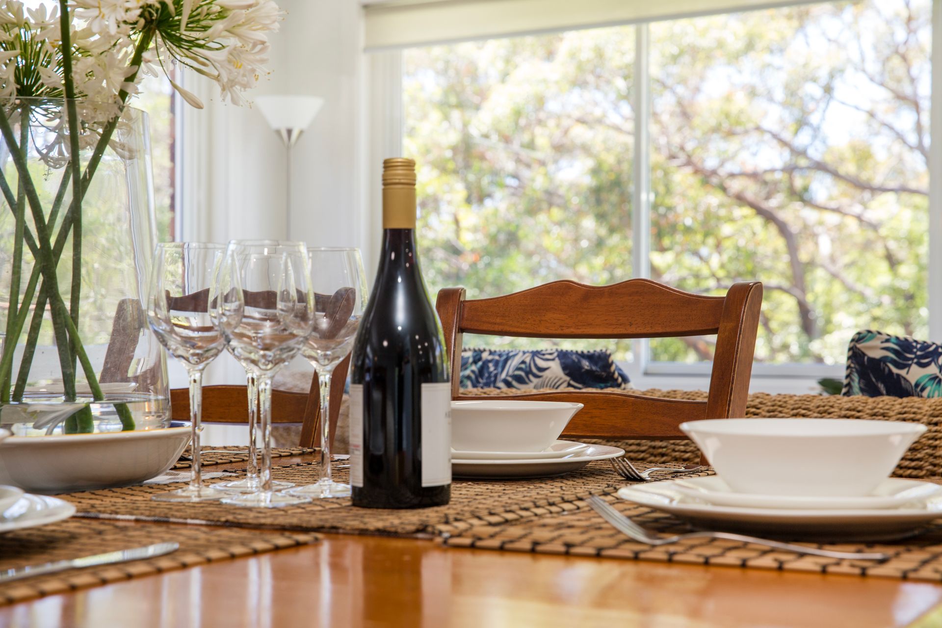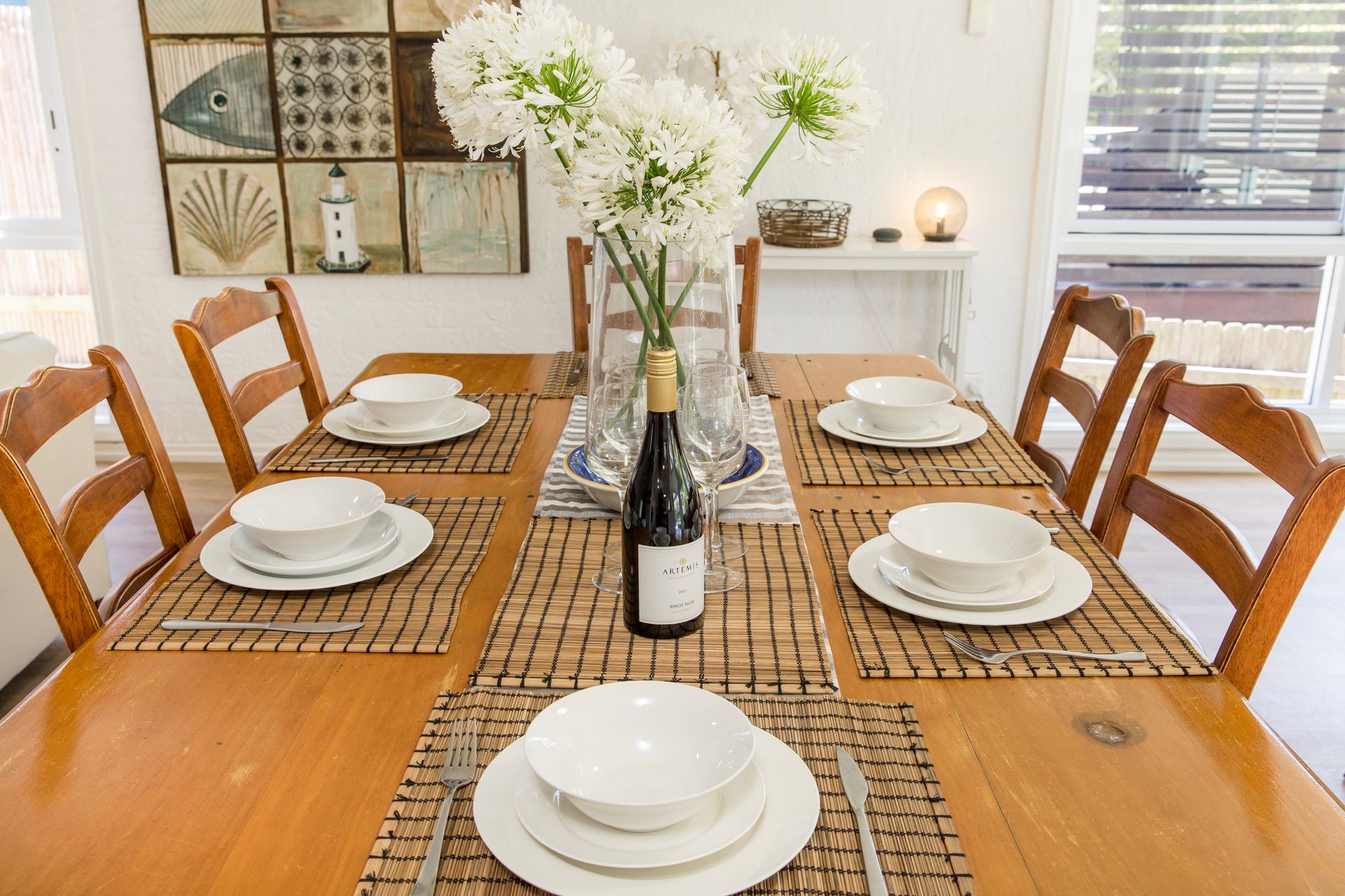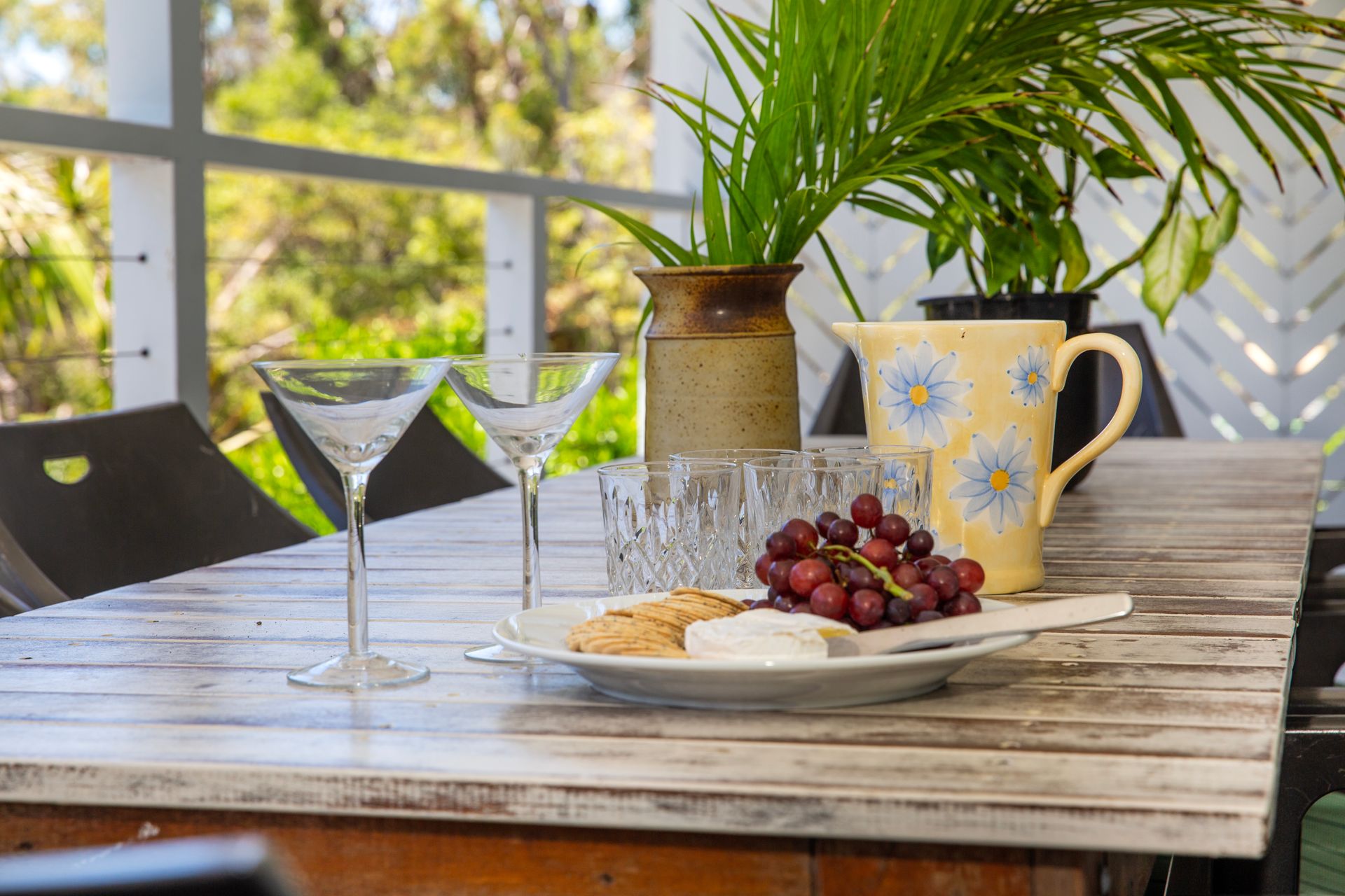 There are multiple living spaces which allow for plenty of room to find your spot to relax. The lounge area has a Smart Tv where guests can settle in and stream movies (using their own streaming service). Off the dining area, there is a sunny space with lounge seating, the perfect place to sit and read a book. The third living area is off the kitchen and opens out to the undercover back deck where guests can sit and enjoy a drink and BBQ.