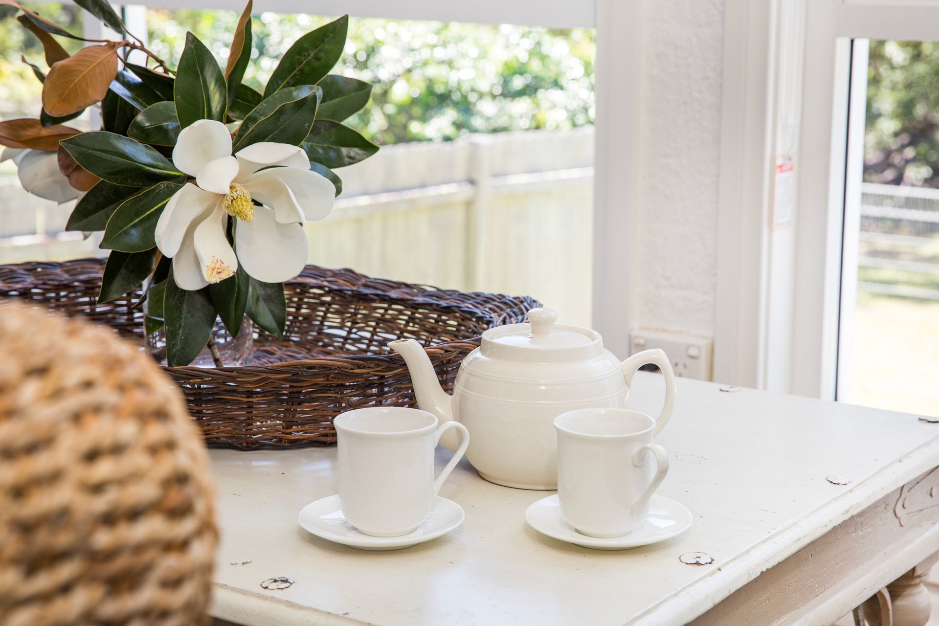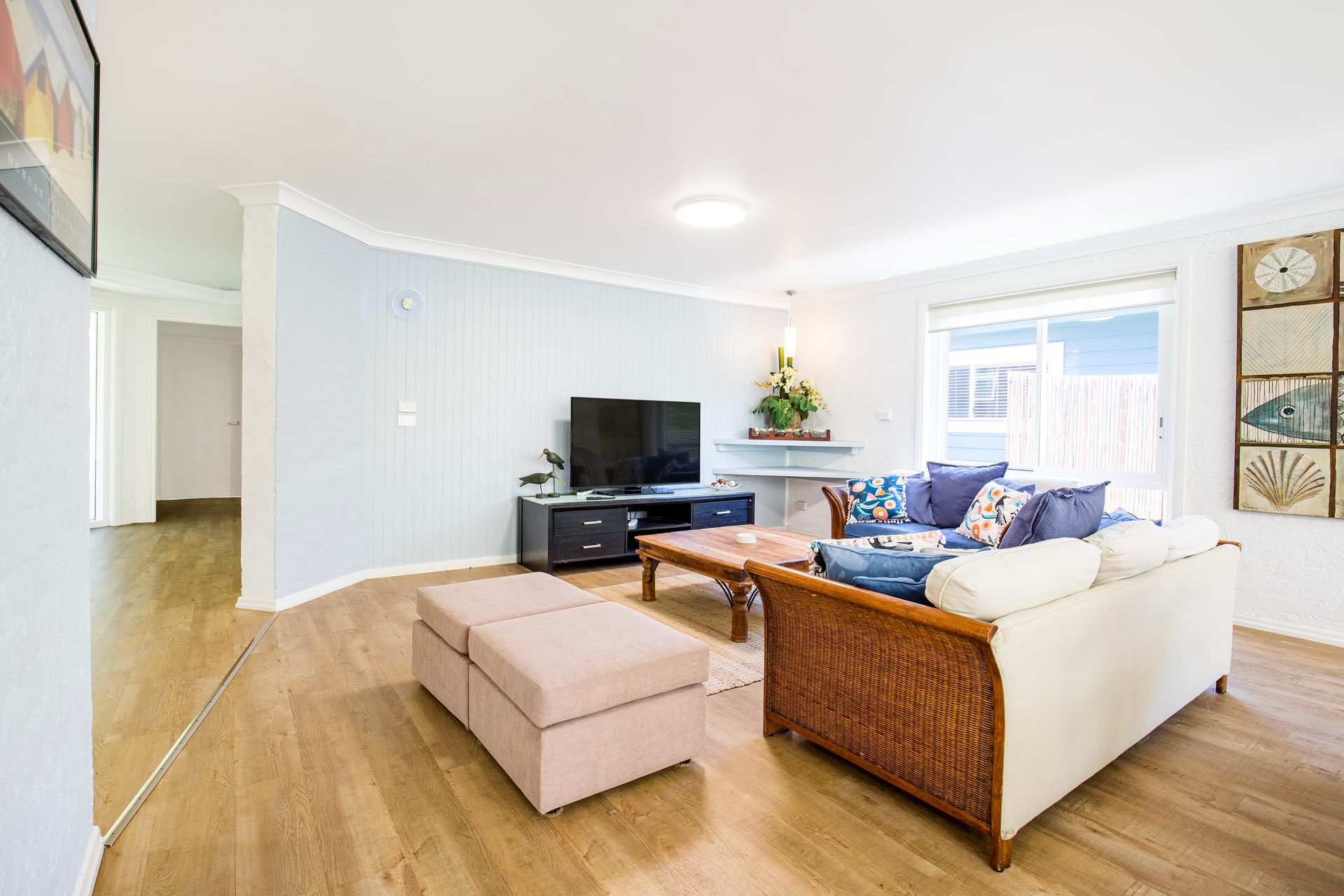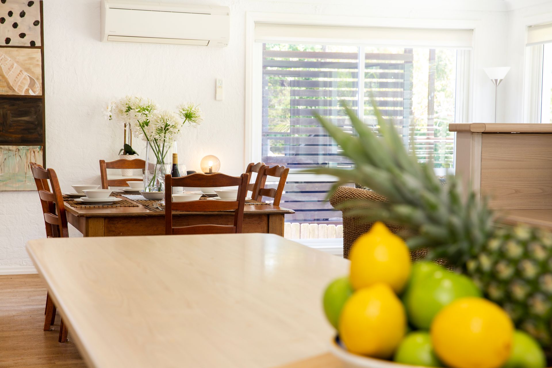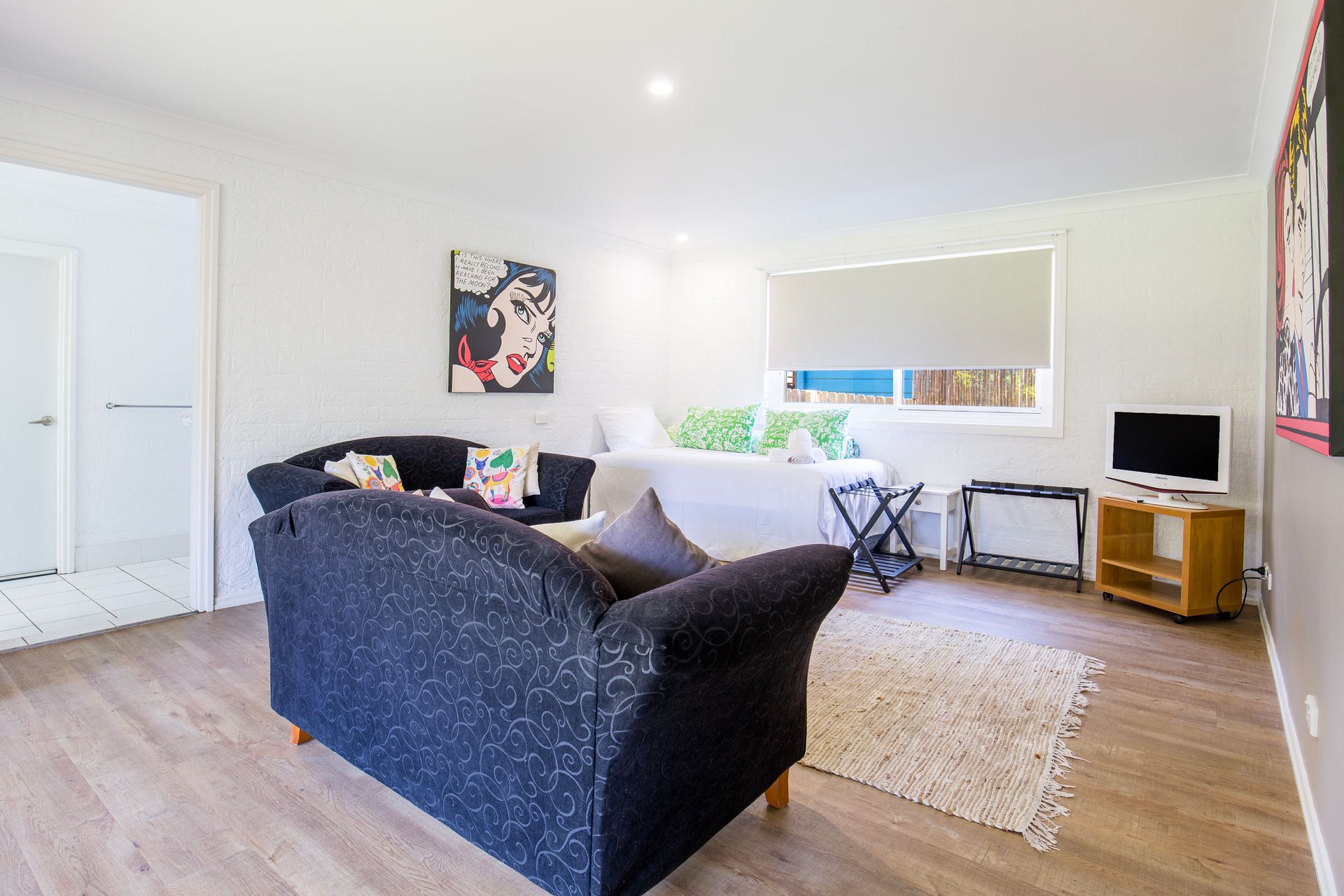 There are multiple living spaces which allow for plenty of room to find your spot to relax. The lounge area has a Smart Tv where guests can settle in and stream movies (using their own streaming service). Off the dining area, there is a sunny space with lounge seating, the perfect place to sit and read a book. The third living area is off the kitchen and opens out to the undercover back deck where guests can sit and enjoy a drink and BBQ.