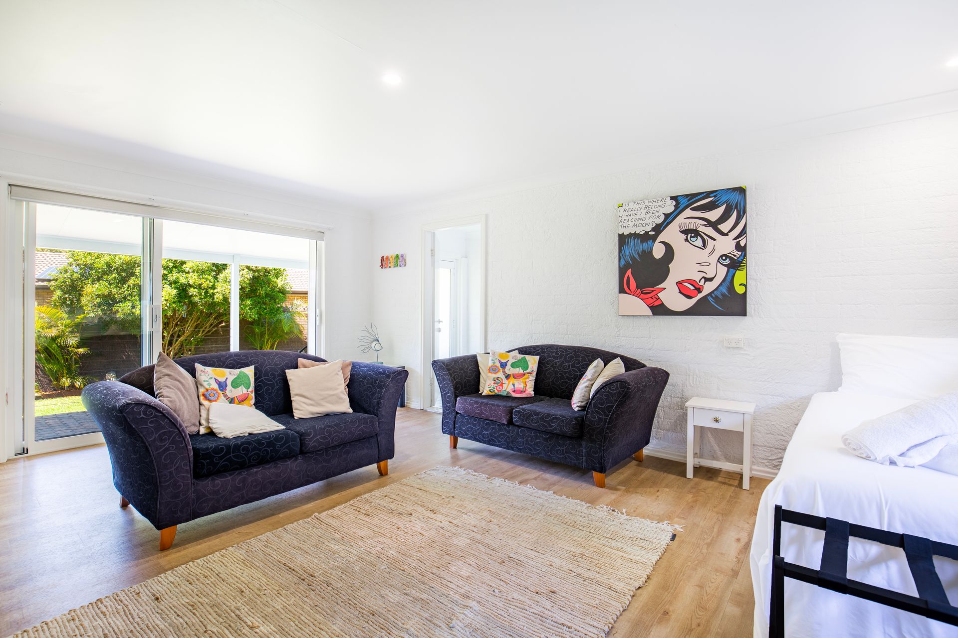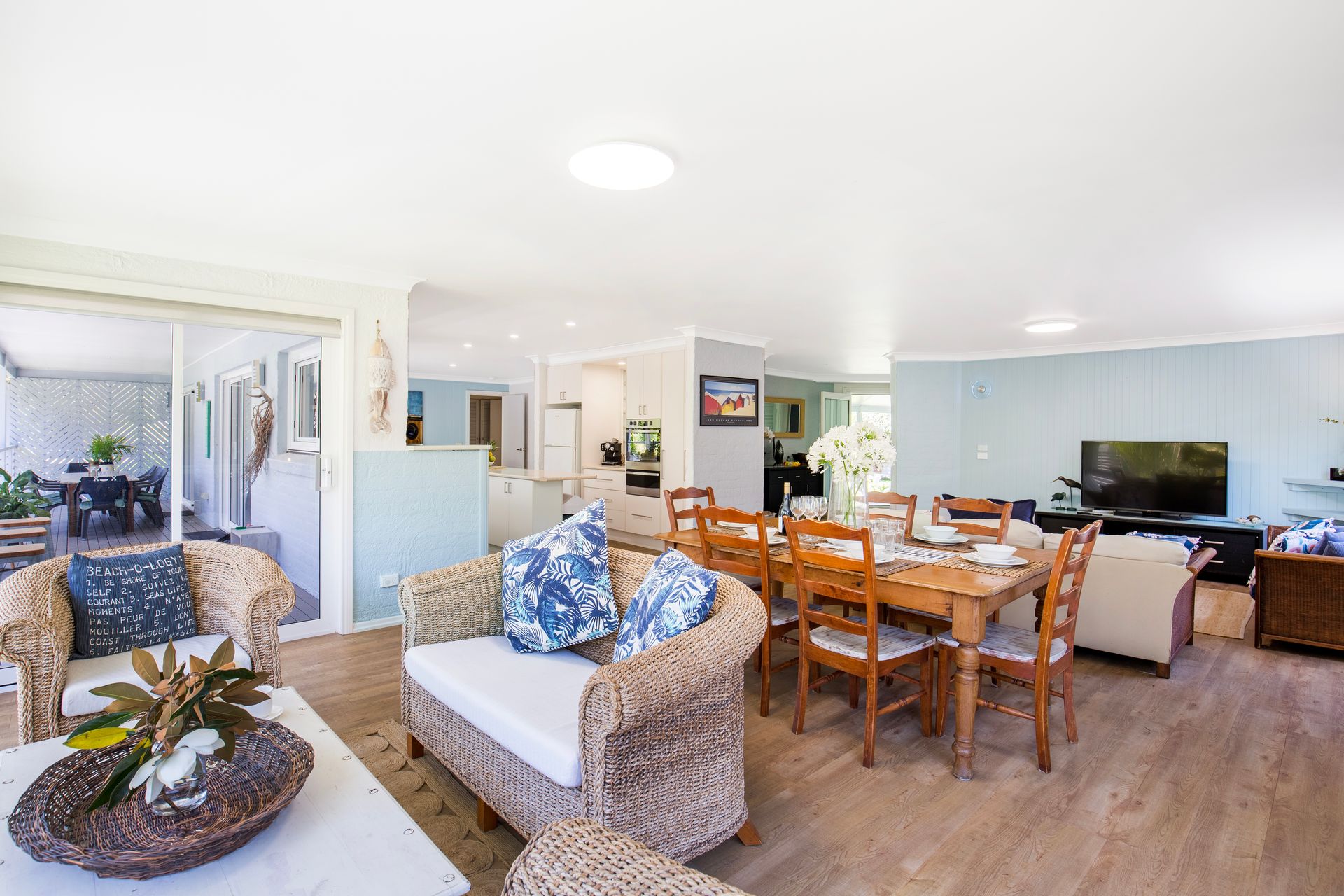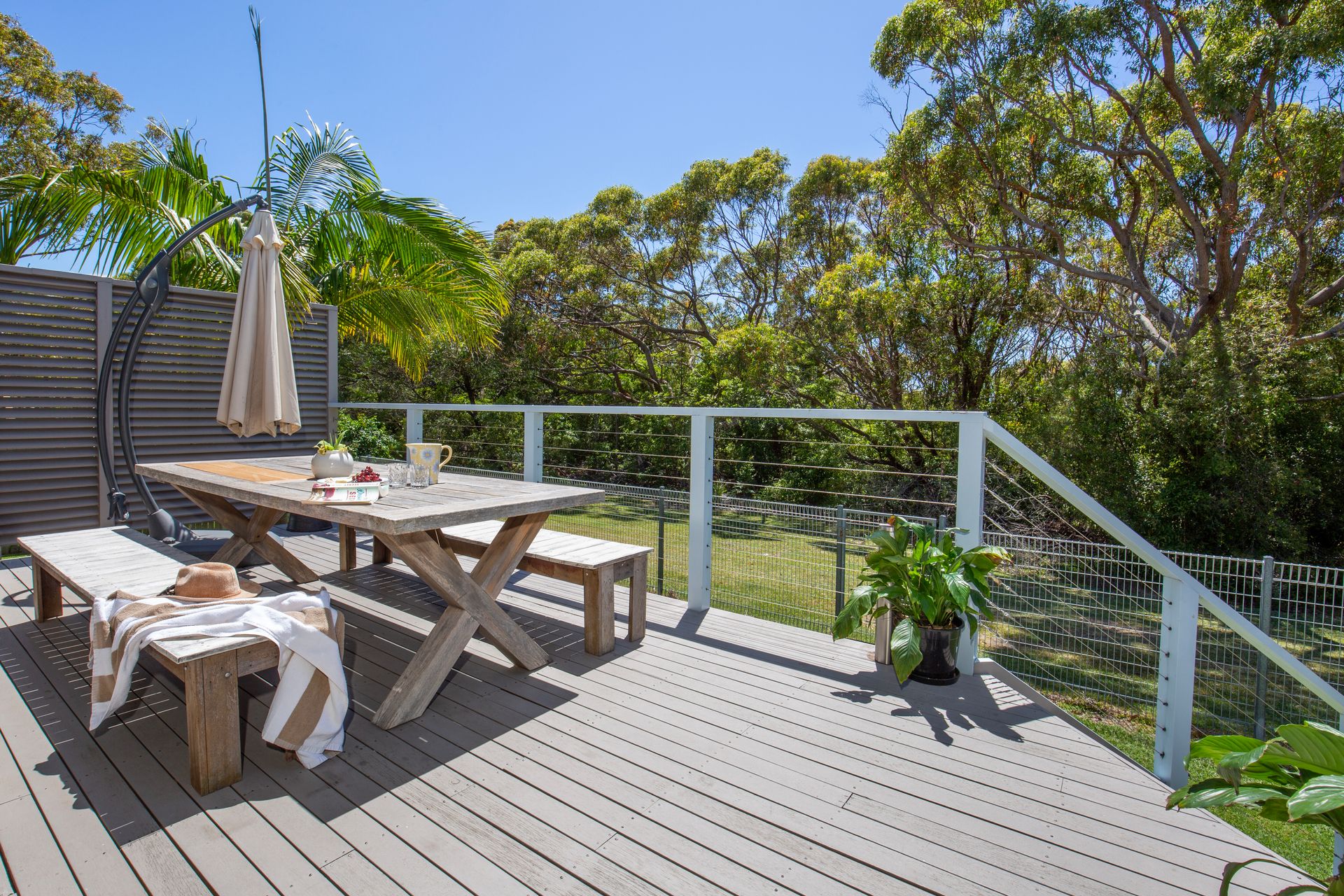 Yigala is located in a peaceful part of Vincentia which backs onto the reserve behind Nelson's Beach. This large home on one level is perfect for a family group, including your four legged friend. With a large deck and Bbq area Yigala is a great place to relax and enjoy your holiday.